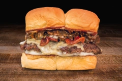 a smash burger made with hormone- and antibiotic-free creekstone farms…