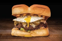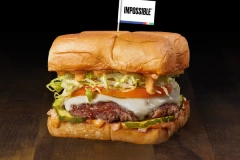 smash burger made with impossible® plant-based patty; on grilled king’s..