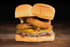 cheddar cheese, smoked bacon, onion rings & bbq sauce atop a smash burger..